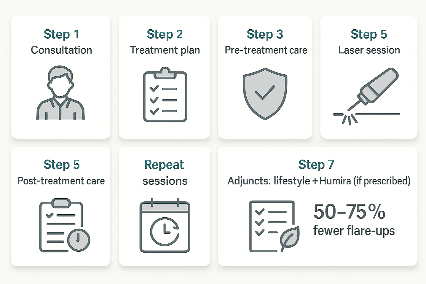 At Danesh Dermatology, we offer comprehensive treatment for Hidradenitis Suppurativa (HS), including Laser Hair Removal treatment. Laser treatment can help support adjunct methods in managing the condition, including lifestyle changes and medications like Humira. Combining different methods offers a multi-faceted approach to improving the long-term results for those who have HS.